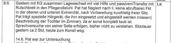 Dazu ist zu sagen, dass mein Vater in keiner Weise in der Lage war, das Zimmer allein zu verlassen. In den 46 Tagen im Hagenhof wurde er drei bis vier Mal (und das ganz am Anfang seines Aufenthaltes) im Rollstuhl aus dem Zimmer gerollt. Ansonsten hat er das Zimmer nur (liegend) zu Untersuchungen bzw. zum Legen und zur Reparatur der PEG verlassen. Aber auch, wenn ein Teil der Infektionen im Krankenhaus KRH Burgwedel erfolgten (wohin er mehrmals gebracht wurde - wegen der PEG) fällt auch das in den Verantwortungsbereich des Klinikums der Region Hannover.